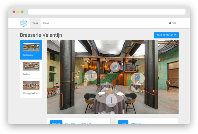 Met 360º fotografie en video wordt een realistische omgeving gecreëerd die direct aansluit bij de werkplek. Deze omgeving wordt voorzien van een interactieve laag waarin informatie kan worden gedeeld door middel van tekst, beeld en geluid en vragen kunnen worden gesteld.